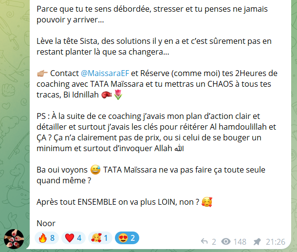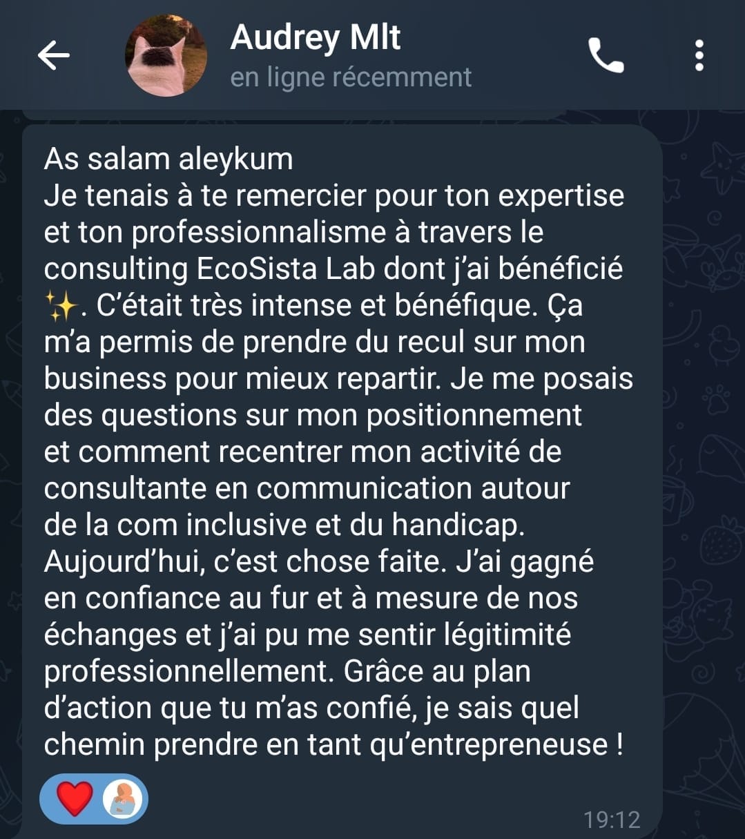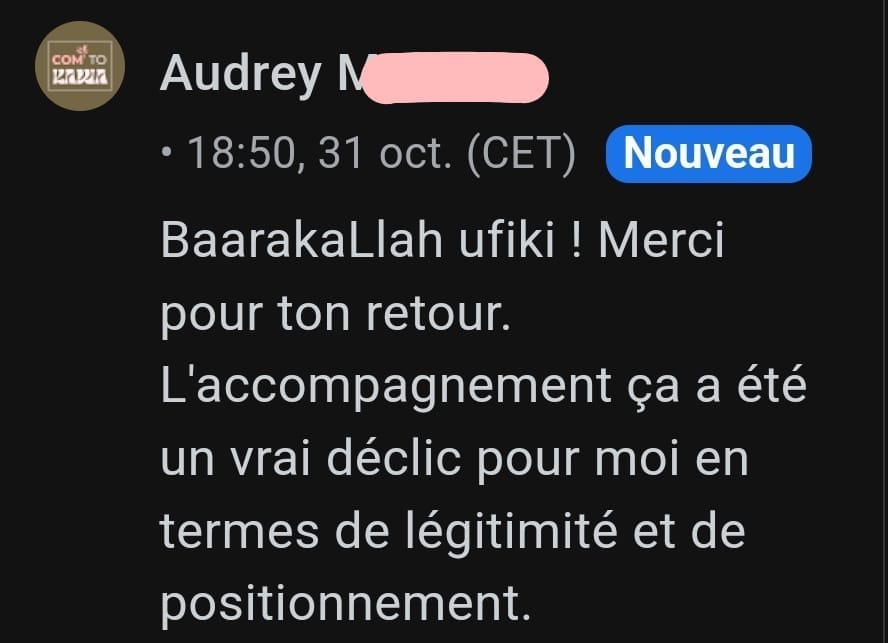 J'aide les entrepreneures musulmanes à mieux s'organiser pour être plus efficace au quotidien afin qu’elles puissent avancer sereinement sur ce qui compte vraiment pour elles.
